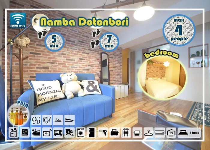 El alojamiento está situado en Osaka, a 10 minutos a pie de la estación de metro Nippombashi. Los huéspedes pueden visitar el Centro comercial Namba Parks situado a 12 minutos a pie de este hotel.
